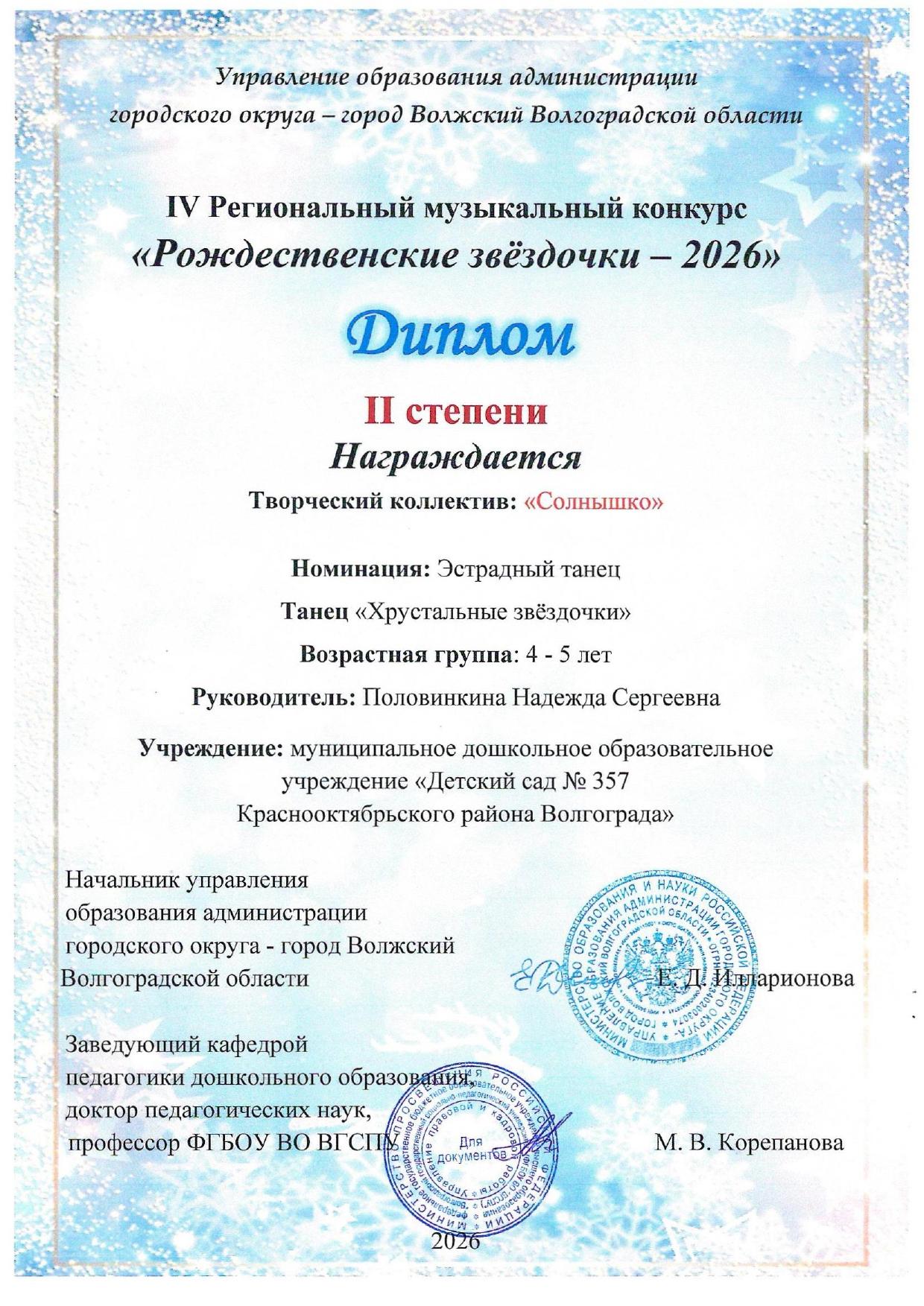 2)Департамент по образованию администрации Волгограда.